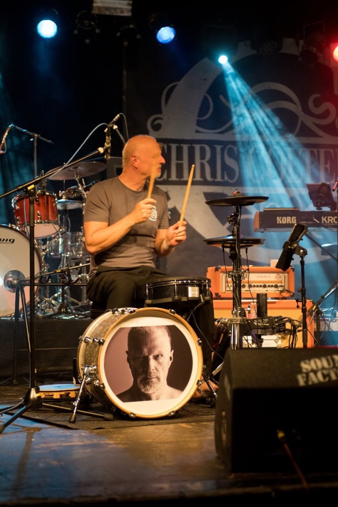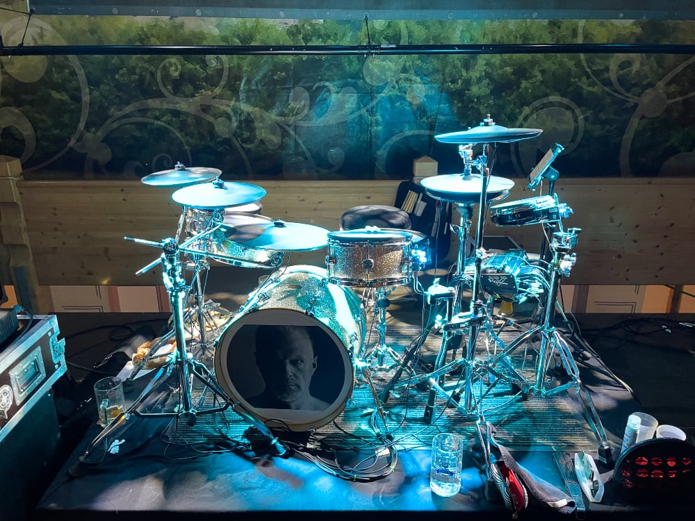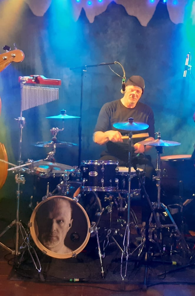 Ich spiele live am liebsten mein E-Drum (Roland TD-50x mit Drum-Tec-Trommeln), hab aber auch mehrere akustische Sets und Becken, ebenso mein Drumset-To-Go.